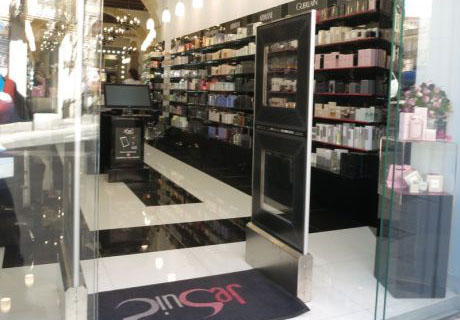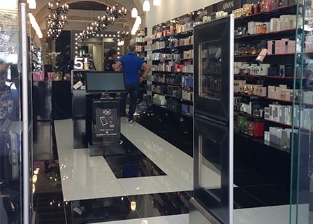 Az illatszer üzletek apró, de drága dolgainak védelmére körültekintően kell megválasztani az alkalmazott technológiát, mivel nem egy esetben a címke mérete nagyobb, mint a védendő tárgy maga. Az EM lopásgátló rendszer bizonyult a leghatékonyabbnak a kicsi és csaknem észrevehetetlen címkéivel és az antennák elegáns megjelenésével.